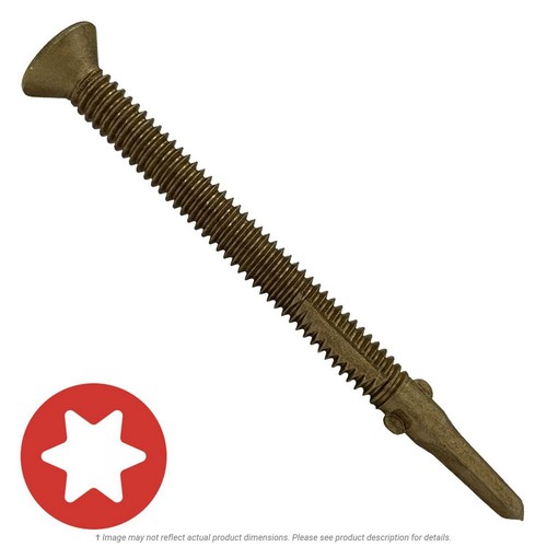 #12-24 x 2″ Ceramic Finish Flat Head Star Drive Winged Self-Drilling Wood to Metal Screw
