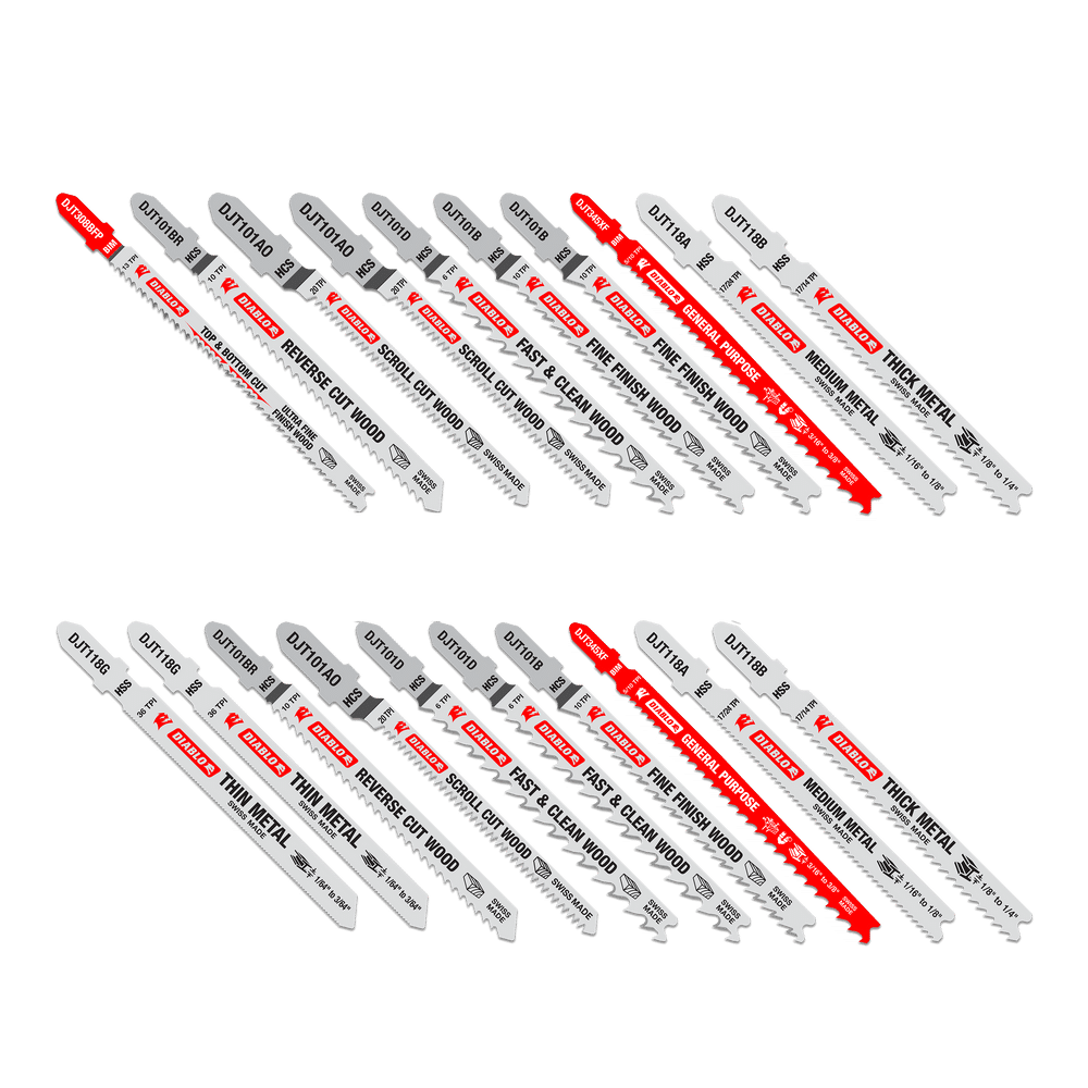 • 20 pc T-Shank Jig Saw Blade Set for Wood & Metal
