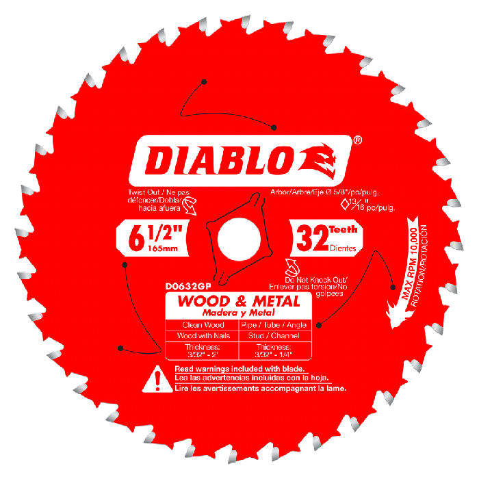Diablo’s next generation 6-1/2 in. 24-tooth framing saw blade features industry leading technology to deliver optimum performance and control in cordless saws. The combination of Diablo’s specially formulated TiCo™ Hi-Density carbide and a Chamfer Alternate Top Bevel tooth geometry delivers maximum life and durability for up to five times longer life, two times more durability and 30% more cuts per charge. The super-thin laser cut kerf design optimizes the efficiency of the blade in cordless and corded saws. This next generation framing saw blade is ideal for framers, roofers, remodelers, concrete formers or anyone wanting ultimate cutting performance in pressure treated wood, 2x lumber, plywood, hardwoods and softwoods.
