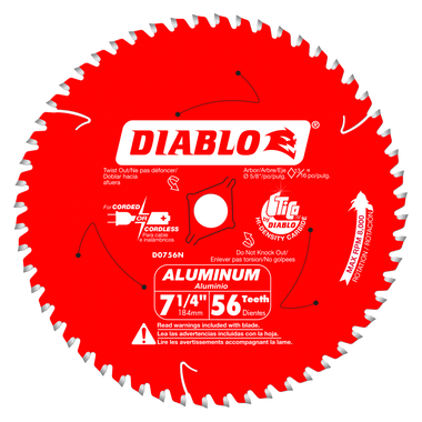 Diablo’s next generation Aluminum saw blades are optimized for cutting thin (up to 1/8”), medium (3/32”-1/4”) and thick (3/16”-7/16”) aluminum metals. Featuring the new, specially formulated Diablo TiCo™ Super-Density Micro-Grain Carbide, these radical blades withstand impact, reduce wear, provide clog free cuts and last longer than standard carbide in metal cutting applications. The specially formulated metal cutting carbide teeth feature a Triple Chip Grind (TCG) Tooth Design for clean, burr-free finishes, virtually eliminating any type of rework. Tri-Metal Shock Resistant Brazing allows these Aluminum blades to slice through metal materials while withstanding extreme impact for maximum durability. Diablo’s Aluminum saw blade series is ideal for corded and cordless saws when on-the-job cutting non-ferrous metals such as aluminum extrusions, copper pipe, brass plate, etc.