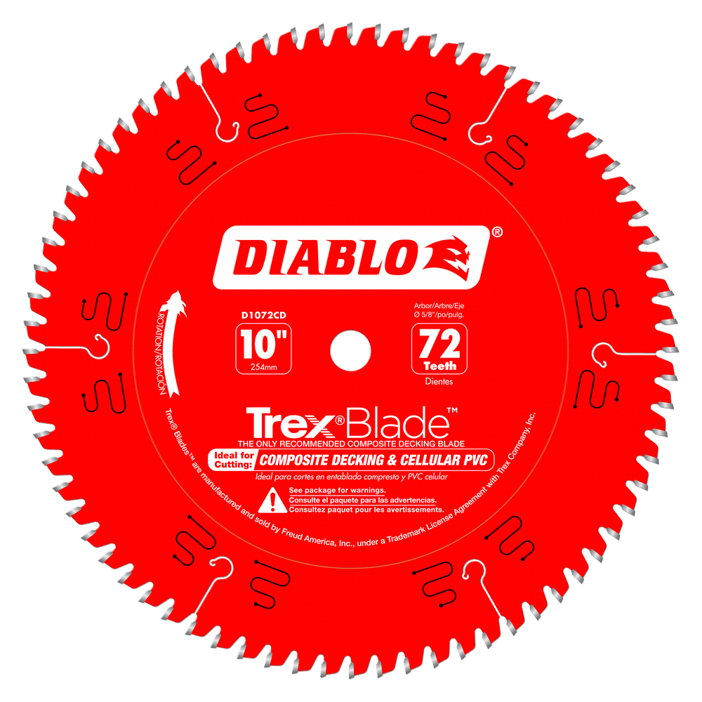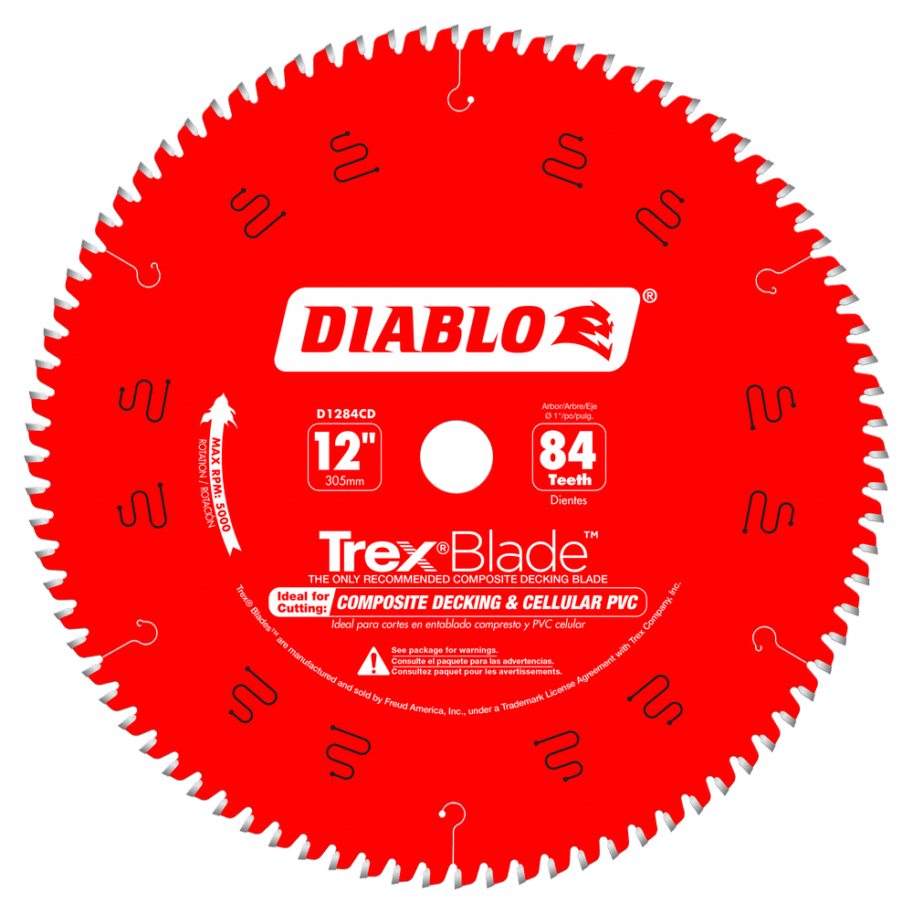 Diablo’s TrexBlade is the only blade recommended by Trex Company for cutting their composite decking materials. These new blades deliver maximum performance and highest quality of finish; making it a ‘must-have’ tool for both professionals and DIYers planning composite decking projects. Diablo’s new saw blade series has a modified triple chip tooth grind design, Perma-SHIELD® non-stick coating, and specific TiCo™ Hi-Density carbide to deliver more efficient and cleaner cuts with no swirl marks, less “gumming” of blade teeth and longer cutting life .