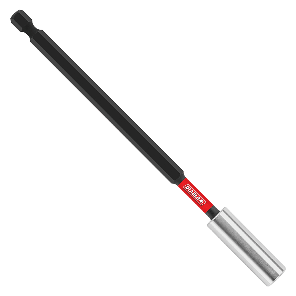 Diablo’s magnetic drive bit holders deliver ultimate performance and maximum durability in extending the drill’s reach in hard to access areas. A high-strength, permanent magnet provides a secure, anti-wobble grip when fastening screws and nuts into a variety of applications. Torque Resistant Design absorbs torque for less stress on the holder and the bit. This range is Impact Strong™, delivering increased shank stability and durability in cordless and corded impact and drill drivers.