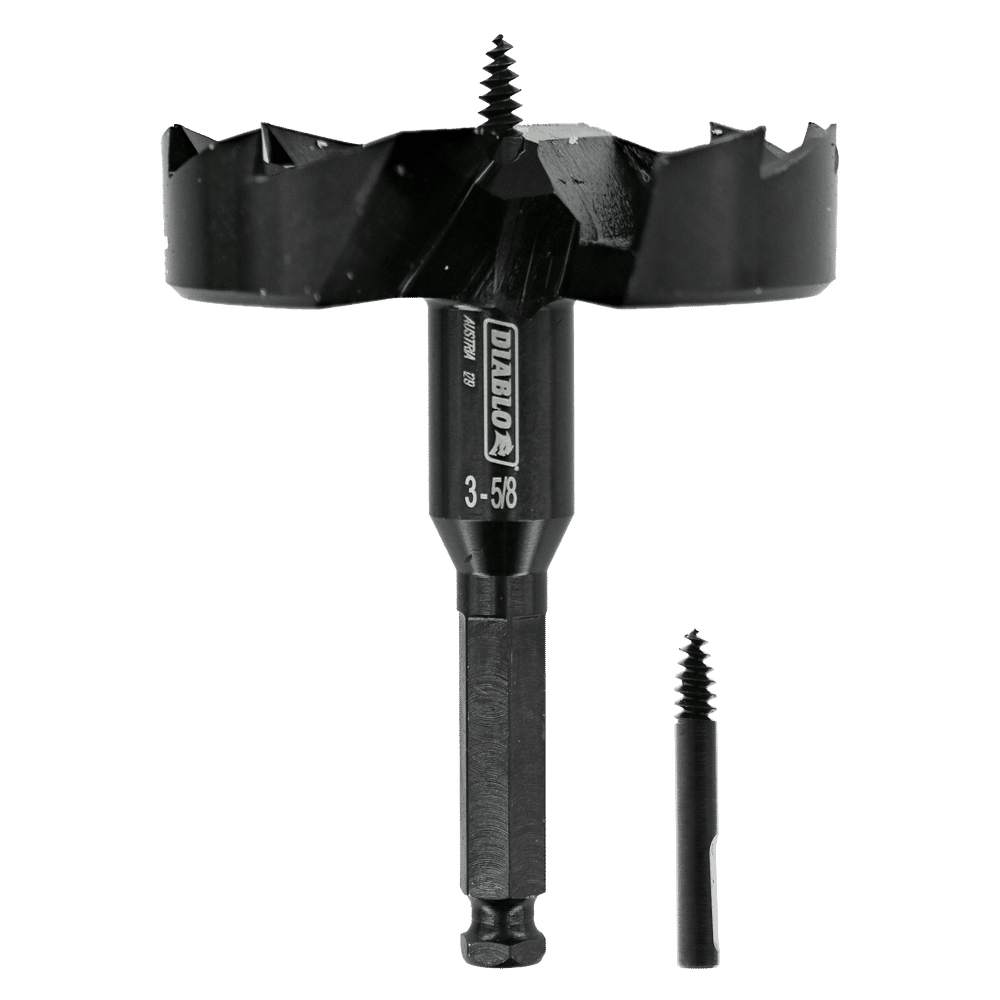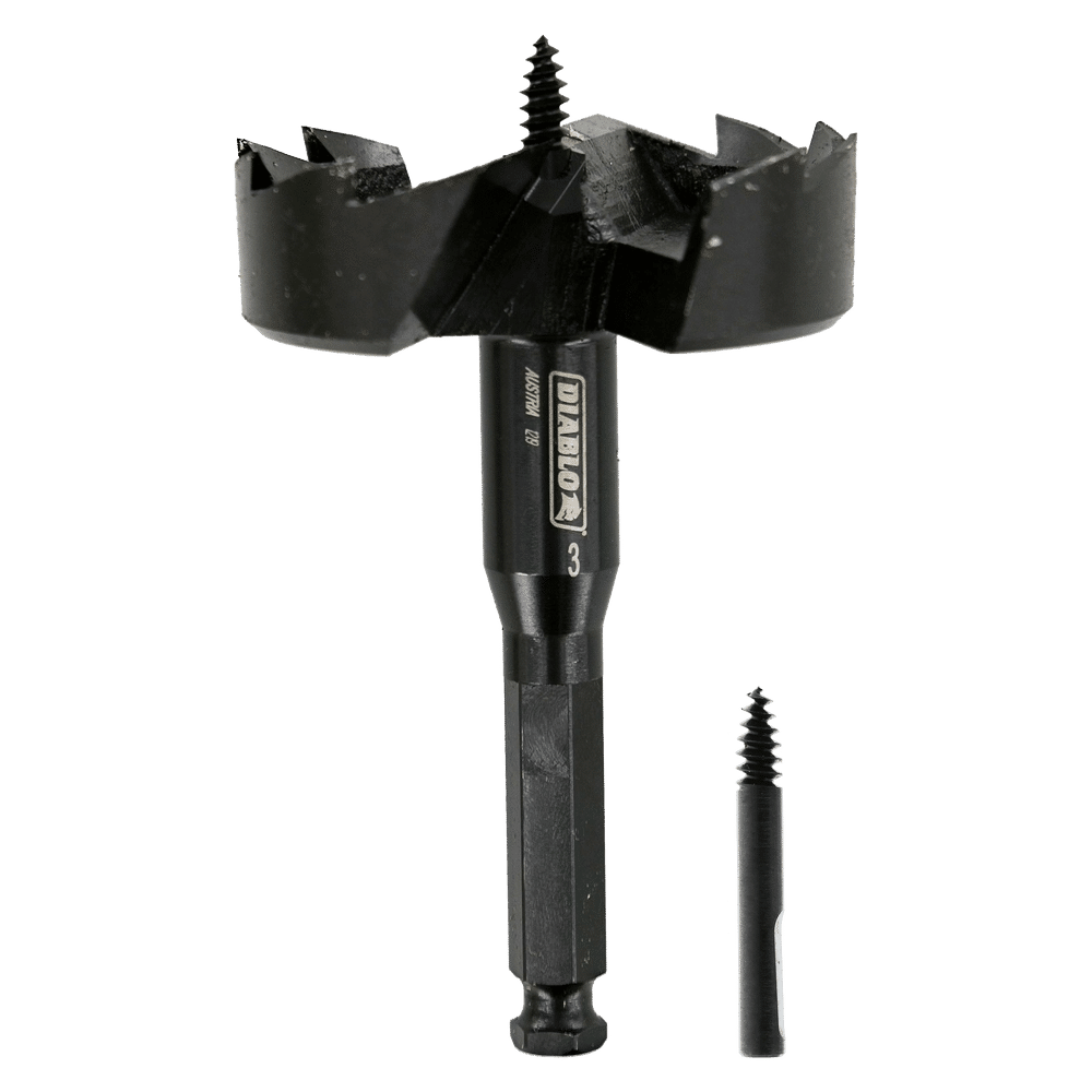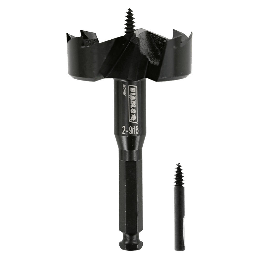 Diablo’s new SPEEDemon™ 2-cutter Self-Feed Bits are designed to strict tolerances in the heat forging manufacturing process resulting in energy efficient drilling with up to 2X life per battery charge. Diablo Self-Feed Bits 2-cutter design and an aggressive low thread count feed screw deliver up to 2X more holes per charge. The replaceable feed screw features a pull out stop mechanism that prevents the screw from slipping out when the bit is removed from the material. The combined innovative engineering of Diablo Self-Feed Bits make them the ideal choice for making holes up to 2X faster in soft woods.